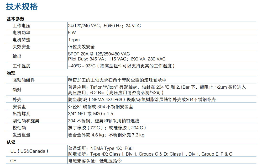 ● 特殊设计的电机 连续阻转不影响电机性能,保证 5~8 年使用寿命